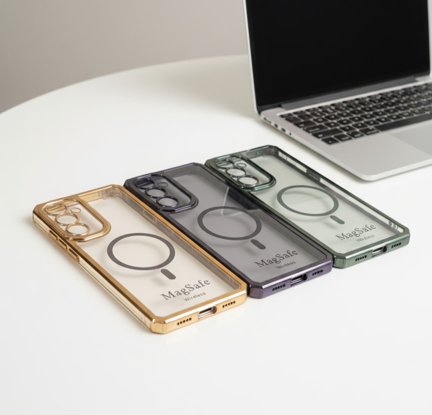 يجمع بين حماية والتصميم العصري بفضل الحواف الملونة اللامعة والخلفية الشفافة التي تُظهر الهاتف.